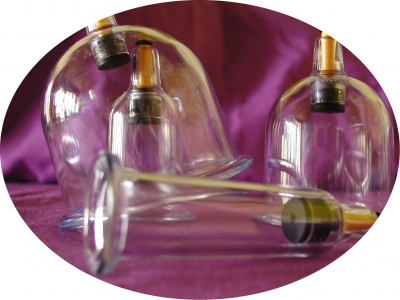 Ballonförmige Gläser unterschiedlicher Größe, werden erwärmt und mit der offenen Seite auf die Haut des Rückens aufgesetzt. Sie ziehen dort ein Vakuum.